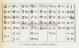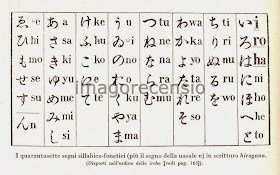 Questo capitolo cerca di spiegare (al lettore italiano del 1941) l'alfabeto hiragana e katakana, illustrando il perché un cinese non potrà mai leggere il giapponese benché gli ideogrammi giapponesi siano gli stessi di quelli cinesi. Per l'autore la complessità del giapponese scritto sta nel fatto che chi legge “deve comprendere ciò che è scritto prima di aprire le labbra e pronunziarlo” e “i segni suggeriscono le idee; comprese queste, il lettore può pronunziare le parole che esprimono tali idee”. Inoltre c'è il problema della doppia interpretazione dell'ideogramma di provenienza cinese: “il suono dell'ideogramma (on) si differenzia dal “significato” (kun) giapponese”. E' spiegato perché questo “bifrontismo fonetico” sia una ricchezza unica per la lingua giapponese.