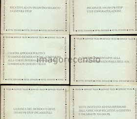 Il contenuto dei Telex, che sostituivano nella meccanica di gioco le carte Probabilità e Imprevisti.