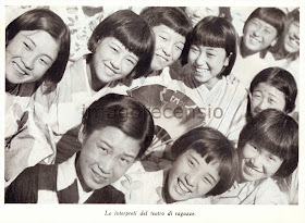 Non poteva mancare il teatro Takarazuka, relativamente nuovo, in cui le donne interpretano anche i ruoli maschili, e che oggi nel 2013 è ancora rappresentato. Sono riportate tutte le informazioni più importanti riguardanti il Takarazuka, che fu fondato da Ishiso Kobayashi nella località balneare di Takarazuka con 12 sole attrici. Le ragazze possono diventare attrici di questo teatro passando un severo esame, su mille domande solo 100 vengono accettate, e di queste solo 50 passano l'esame. Le prescelte vi entrano a 12 anni, con un contratto di 9 anni, durante il quale andranno a scuola e reciteranno. Fino alla fine del contratto non potranno sposarsi, previo pagamento di una salata multa, e mai potranno ad altre compagnie teatrali. Secondo l'autore il tipo di vita condotto da una diva del Takarazuka è pietoso, tanti sono i sacrifici, quasi nessuno il lusso. L'autore riesce con difficoltà ad intervistare la famosa attrice Fukuko Sayo, sorvegliata dagli agenti del teatro.