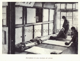Qui si illustrano le condizioni di lavoro e vita delle operaie dai 13 ai 24 anni di una filanda, la “Toyo Boseku”, la più grande filanda esistente al mondo. Le due mila ragazze vivono in fabbrica, mangiano nel refettorio, finito il turno di lavoro ci sono corsi educativi, possono ricevere visite tre volte al mese. Il contratto è stipulato con la famiglia, una parte dello stipendio resta alla ragazza come dote per il matrimonio, di norma a 21 anni si licenziano per sposarsi. L'autore spiega come le condizioni di lavoro di queste operaie delle “Toyo Boseku” siano molto migliori di tante altre impiegate in piccole aziende.