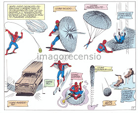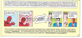 All'interno del libro, che contiene, oltre agli approfndimenti di Secchi, alcuni numeri dei fumetti di Spiderman... dell'Uomo Ragno, ci sono queste tavole auto ironiche sulla creazione e sulle consegne dei disegni in tempo per la pubblicazione. Trovo molto interessante questa mini storia, perchè un giovane lettore dell'epoca poteva così capire che un fumetto, oltre ad essere un fumetto, era un'opera creata da più persone, e iniziare a conoscere questi autori.