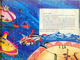 Nel primo disegno in alto a sinistra si nota il TFO nelle fauci di un mostro spaciale di Vega, e poi si vede Alcor, il "bagnino dei cieli", sulla spiaggia durante l'invasione della terra...