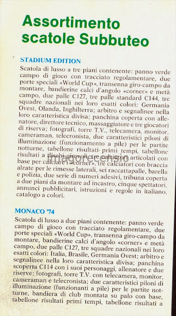 Il mio Subbuteo era (ed è) assemblato un po' alla volta, ma c'erano anche le confezioni complete, tra cui la mitica "Monaco 74" (ancora in possesso di un amico)!