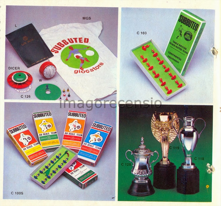 Da notare il "Dicer" o "Toto Subbuteo", ed anche il "c126" per gli allenamenti! E c'era anche la squadra (c103) in tuta di allenamento!