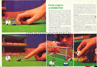 Una delle cose che più mi affascinava erano questi cataloghini con tutti gli accessori disponibili al momento, dove vedevi il campo da gioco diventato un vero stadio, leggevi dei vari tornei internazionali, cercavi di imparare una tecnica di tiro che non fosse il tiro della biglia... ma se si chiam "il gioco in punta di dito" cosa cacchio continui a giocare come con le biglie?!?!