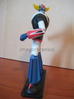 Questo Goldrake è un pelino più alto del Jeeg, arriva a 13 centimetri, anche per la postura differente. La posa è un po' particolare, non saprei definirla, sembra quasi che stia in equilibrio, forse Acrtarus ha sbevazzato qualche liquore flediano...