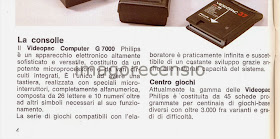La Console Videopac della Philips ( link Wikipedia ), anche conosciuta come Magnavox Odyssey, nasce nel 1978, questo catalogo risale circa al 1983. La data non è specificata nel catalogo, ma l'ho desunta da alcuni giochi annunciati qui come novità e che sono presenti in alcune pubblicità su Topolino in numeri del 1983.