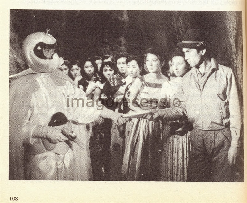 Il libro dei due autori vuole indagare tutto il cinema del fantastico giapponese, quindi non solo il genere “kaiju”, per questo il quarto capitolo è dedicato ai film con alieni. Gli autori per questo capitolo fanno una interessante ed arguta osservazione su come questi film giapponesi, analogamente a quelli statunitensi del periodo, fossero ammantati di xenofobia. I giapponesi, come i wasp (White Anglo-Saxon Protestant) americani, erano insidiati dai gaijin, gli stranieri di altri mondi, che addirittura cercavano di rapire le donne giapponesi (in “I Misteriani”). Come nei capitoli precedenti ogni film comprende la sinossi della trama e una breve critica.
