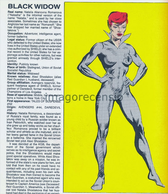 Ecco uno degli esempi di personaggi che già iniziavano a cambiare rispetto a quelli "miei", la Vedova Nera, qui con un costume veramente orrido... senza contare che le hanno tagliato i capelli...