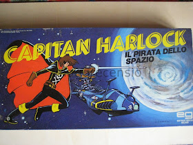 Tra le innumerevoli prove dirette (come questo blog) dell'impatto dei "cartoni animati giapponesi" un certo numero sono indirette, e per certi versi sono più esplicative del fenommeno rispetto le prime. Considero un prova indiretta di questo impatto il gioco in scatola di Capitan Harlock, in cui l'eroe compare giusto sulla confezione della scatola e nelle regole, ma incredibilmente non nel gioco. Questa anomalia non vale solo per il protagonista della serie, ma per tutti i suoi personaggi, infatti nel gioco non c'è nè una carta, nè un segnaposto, neppure una navicella riconducibile alla serie tv!