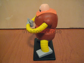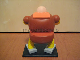 La colorazione del mio pezzo ha un certo numero di sbavature, sul collo e sulle mani. E le mani sono parte del mistero "posture" di questa "Go Nagai Robot Collection" (basta vedere le altre uscite: link ), intuisco il senso della postura, ma non ne sono certo. Forse volevano mostrare un Bosso Robot che si scrocchiava le nocche delle mani prima di un combattimento, viste anche le sopracciglia aggrottate, ma dal risultato finale pare che voglia nascondere qualcosa nella mano destra.