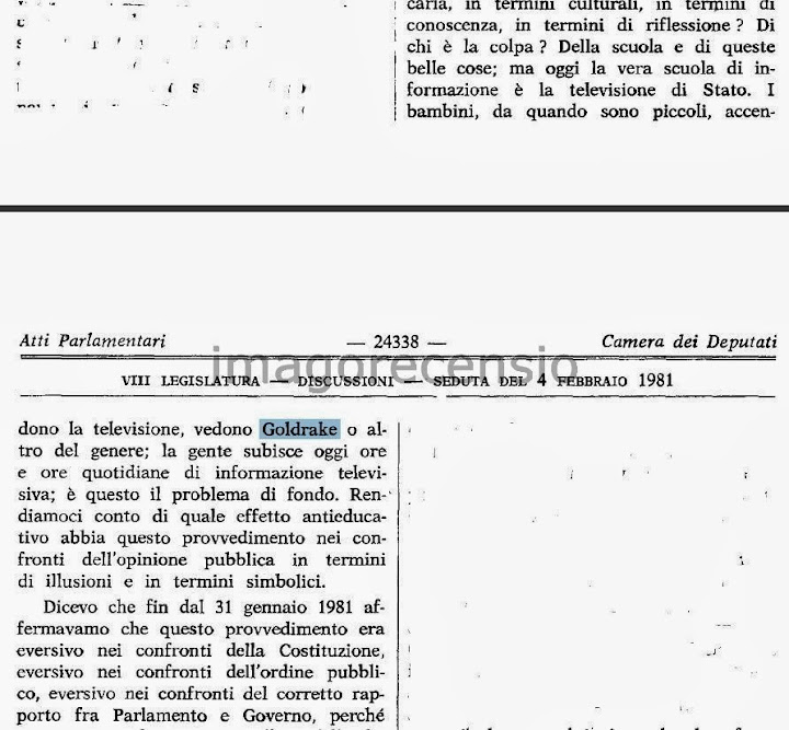 Goldrake e Mazinga citati in Parlamento - febbraio 1981