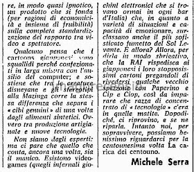 E' veramente esilarante che Serra consideri "gli infernali giochini elettronici che si trovano ormai in ogni bar d'Italia" migliori dei fumetti giapponesi, visto che gran parte di quei cabinati erano made in Japan!
