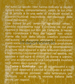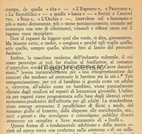 A pagina 12 la prima citazione, in cui si parla dei libri per ragazzi e del rapporto coi mezzi di comunicazione di massa, sfiorando appena il tema dell'interesse dei quotidiani per il nuovo fenomeno dei cartoni animati giapponesi.