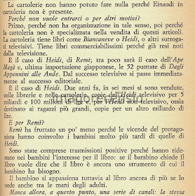 Posso affermare che il suo interesse risiede solo in questo citazionismo, in quanto il saggio, in realtà, non analizza i cartoni animati giapponesi, ma ne parla solo in rapporto all'editoria per bambini/ragazzi. Gli autori inglobano nel termine "libri per ragazzi" qualsiasi materiale stampato su carta a loro dedicato, quindi dai libri ai fumetti, e alla fine degli anni 70 il successo televisivo di Heidi, Goldrake, Capitan Harlock etc, diede vita ad un boom editoriale senza precedenti.