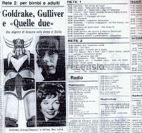 Non ho fatto una ricerca su tutti i quotidiani italiani dell'epoca, mi son limitato a Stampa (che non pubblicò nulla), Repubblica e Corriere della Sera, e qualcosa potrà anche essermi sfuggito (non mi pare, però non potrei escluderlo). In questo primo post inserirò i pochi articoli inerenti lo sbarco di Goldrake sul pianeta italico.