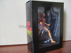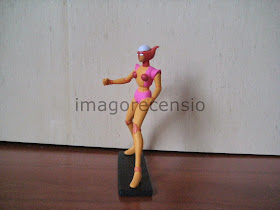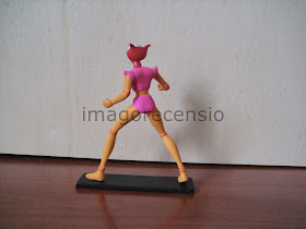 Come si può vedere la posa scelta per il disegno è abbastanza inquietante, quasi allusiva, da dama di compagnia, di certo non quella di un robot femminile impegnata, suo maglrado, in cruente battaglie. Per fortuna la posa del modellino, in pieno stile Rocky Joe, è meno effemminata, direi più che acettabile. E' anche vero che quando si ha la fortuna di uscire appena dopo Tetsuya Tettuto, e le tette le si porta legittimamente, non si può far altro che una bella figura.