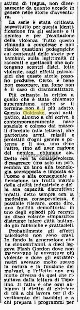 Fino ad ora si può annoverare un solo articolo di analisi su Goldrake, quello positivo di Giulia Borgese il 9 maggio 1978 sul Corriere della Sera (presentato nel post sull'esordio di goldrake in tv), ma il 6 gennaio 1979, sempre sul Corriere della Sera, il giornalista Luca Goldoni in seconda pagina torna sul robot giapponese, ed anche questa volta il giudizio è positivo!