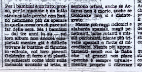 Giulia Borgese accenna alle polemiche scatenate da Silverio Corvisieri su La Repubblica, ma poi si limita a cercare di spiegare agli adulti che leggono i suoi articoli il punto di vista dei bambini, che di solito nessuno ascolta.
