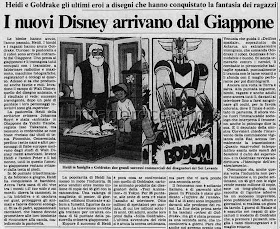 In una nazione waltdisney-dipendente si azzarda a giudicare superiori i cartoni animati giapponesi rispetto a quelli del produttore di Biancaneva, Bambi e Dumbo, ne esalta i colori e le moderne tecniche di ripresa. Nel proseguo dell'articolo passa alla non bella situazione del paese, usando Goldrake per evidenziare quanto positivo possa essere il trionfo dei buoni, rispetto alla società italiana in cui pare che i buoni non vincano mai (non è cambiato molto il paese dal 1979...).