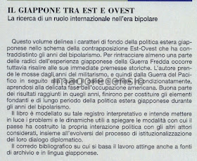 Obbiettivo principale di questo volume è analizzare le relazioni politiche e diplomatiche giapponesi nello schema della contrapposizione Est-Ovest, mettendo in luce il peso determinante che la struttura del sistema internazionale (inteso come “variabile indipendente”) e il rapporto privilegiato di Tokyo con Washington (qui considerato come “variabile interveniente”) hanno esercitato nella mancanza costruzione di un efficace dialogo diplomatico su temi di high-politics tra il Giappone e gli attori con i quali si è interfacciato.”.