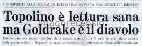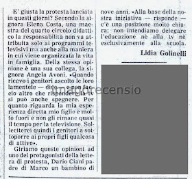 Solo il giorno prima, sempre Lidia Golinelli, sempre su Il Resto del Carlino, scrisse un altro articolo sui genitori di Imola che si erano ribellati allo strapotere mediatico di "Goldrake Mazinga &C."