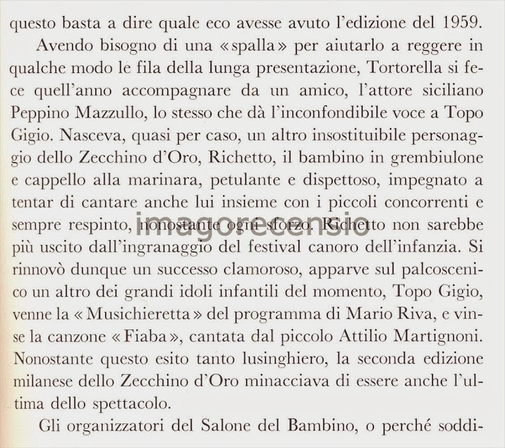 Trovo interessante questa pubblicazione, oltre al fatto che mi ricorda qualche stupenda canzoncina, perché rende bene tutta l'organizzazione della manifestazione, la sua storia, che nasce all'inizio indipendente dal coro dell'Antoniano, cosa che non sapevo.
