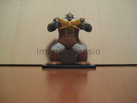 Passando dai miei ricordi al modellino di questa 47esima uscita, devo dire che non è fatto male, non mancano le sue belle classiche sbavature di colore, e bisogna passare sopra ai mutandoni marroni a pannolone che indossa, però quello che ha attirato subito la mia attenzione, quando ho aperto la scatola, è stata una piccola robina bianca e rossa nella zampa destra di King Gori, cosa era?