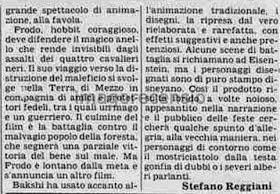 Il primo è a firma Giovanni Grazzini, che apprezza lo sforzo sul versante dell'animazione, ma ne stronca la trama considerata noiosa, benché a me pare si intuisca che non avesse mai letto un libro di Tolkien.