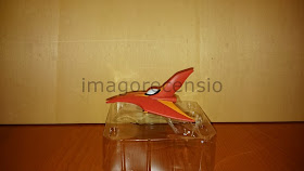 E' largo 8 cm (da punta dell'ala destra a punta dell'ala sinistra), lungo 11 cm (dalla punta a nteriore a quella posteriore della coda), alto poco più di 4 cm.