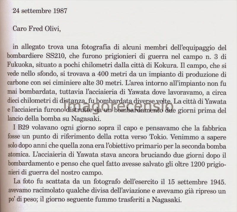 Le scan inerenti le lettere ricevute da Olivi da parte di due prigionieri che si rallegravano che il suo B29 non potè sganciare Fat man su Kokura a causa della scarsa visibilità.