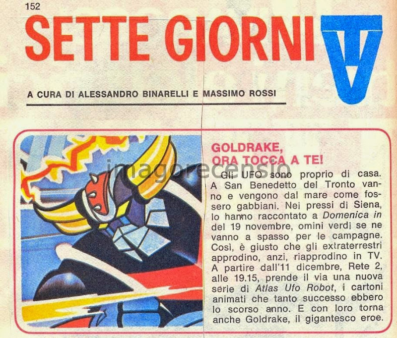 Nel numero 1166 del 2 aprile 1978, quindi la settimana dell'esordio tv di Goldrake, si può notare Atlas Ufo Robot nella programmazione sulla Rete 2 alle 18,45. A dire il vero non era proprio quello il titolo... che era incredibilmente sbagliato, oltre che ridicolo: "Uffa Robot".