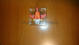Purtroppo il mio pezzo ha una bella sbavatura sula fianco sinistro in alto, dove c'è la parte della carlinga in arancione, inoltre l'ala superiore è un pelino storta. Non è la prima volta che pezzi di astronavi sono storti, probabilmente mancano di agganci che aiutino il povero disgraziato che deve assemblarli a tenerli in linea.