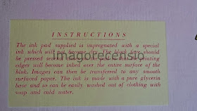 Contengono, oltre ai 12 timbrini, la scatolina con l'inchiosto (che non ho verificato se ancora fresco), tre matitine colorate ed un album da disegno. Questo perchè il divertimento del gioco non era solo quello di impiastriciarsi con l'inchiostro, ma anche quello di colorare sull'album l'interno delle figure stampate.
