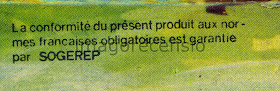 La dicitura per il mercato francese, quando ancora non esisteva normative valide per tutta l'Europa.