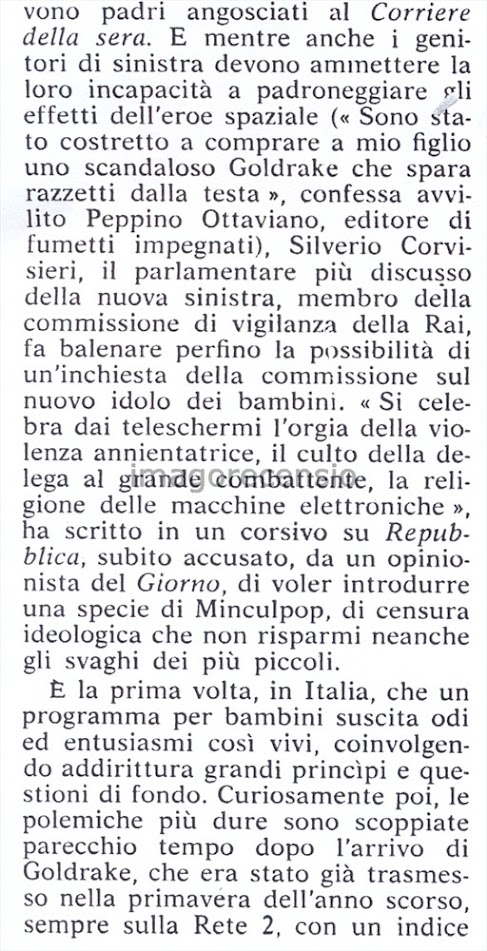 Non metto in dubbio che la giornalista Chiara Valentini sia una professionsita in gamba, con tutte le tonnellate di articoli che avrà scritto nella sua carrire un paio un po' farneticanti ci possono stare, mi chiedo solo perché proprio con Goldrake... perchè i giornalisti, anche di fama, quando incrociavano Goldrake perdevano spesso le proprie capacità di analisi?