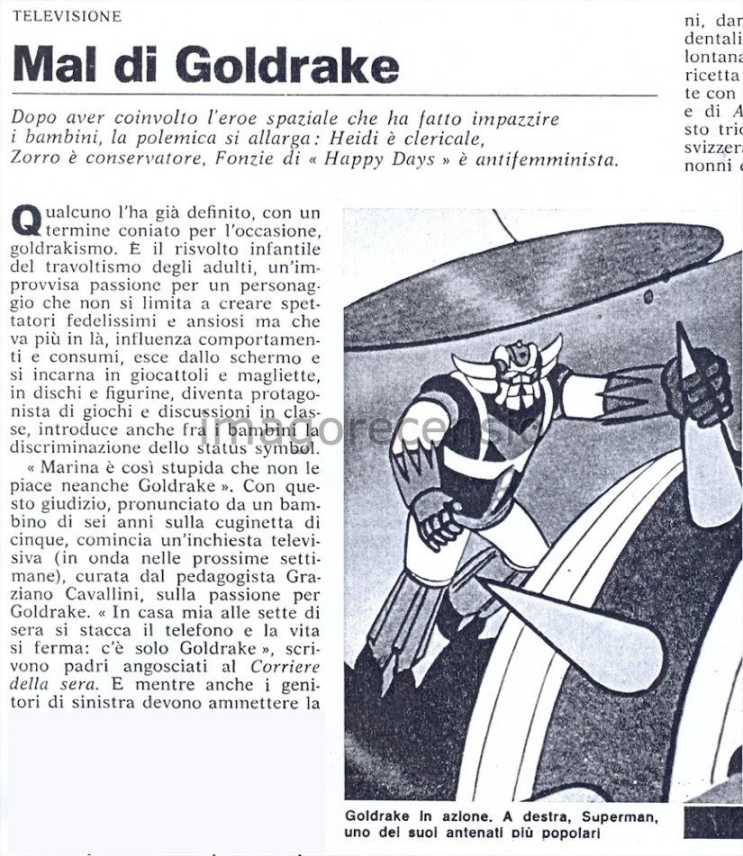 "Mal di Goldrake", di Chiara Valentini - Panorama 23 gennaio 1979