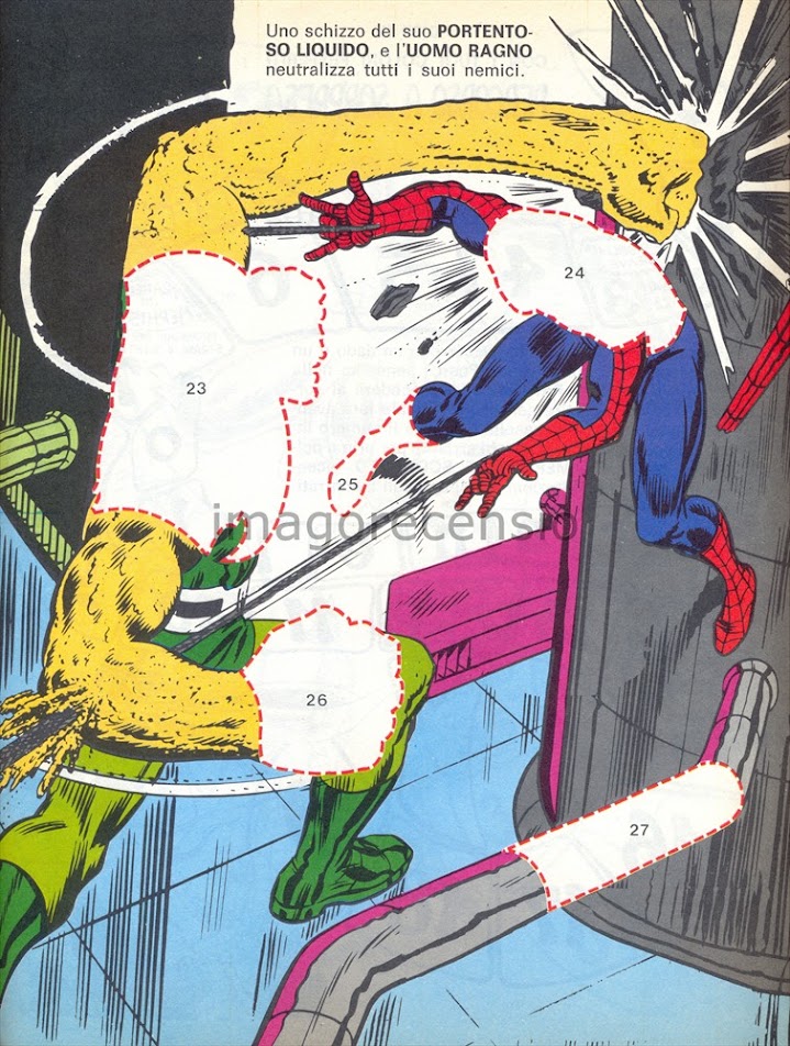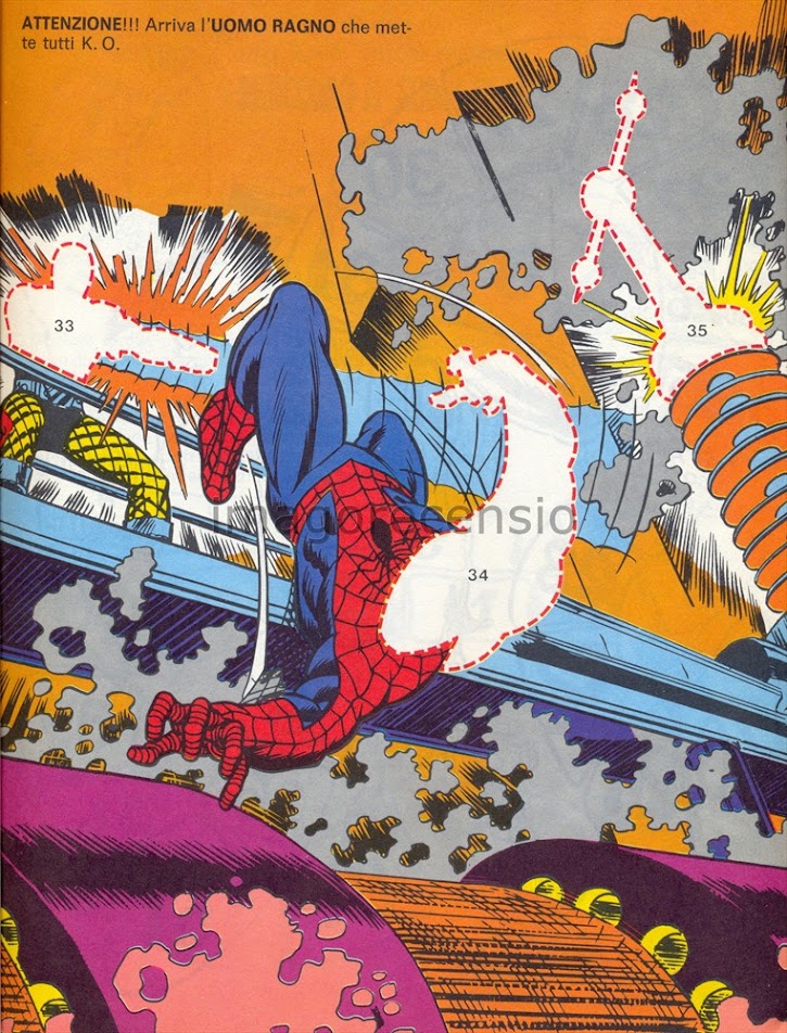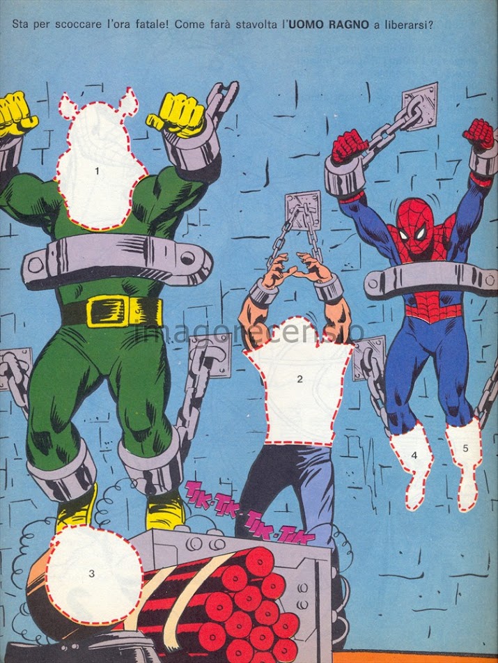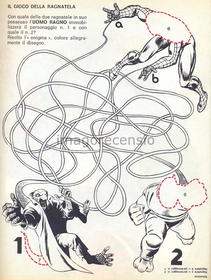 Per fortuna il secondo numero di "Stacca Incolla, gioca... colora... leggi" (qui il primo) non contiene solo una la storia dell'arrampicamuri con Tarantula, ma un sacco di giochetti da incollare, staccare colorare e leggere :]