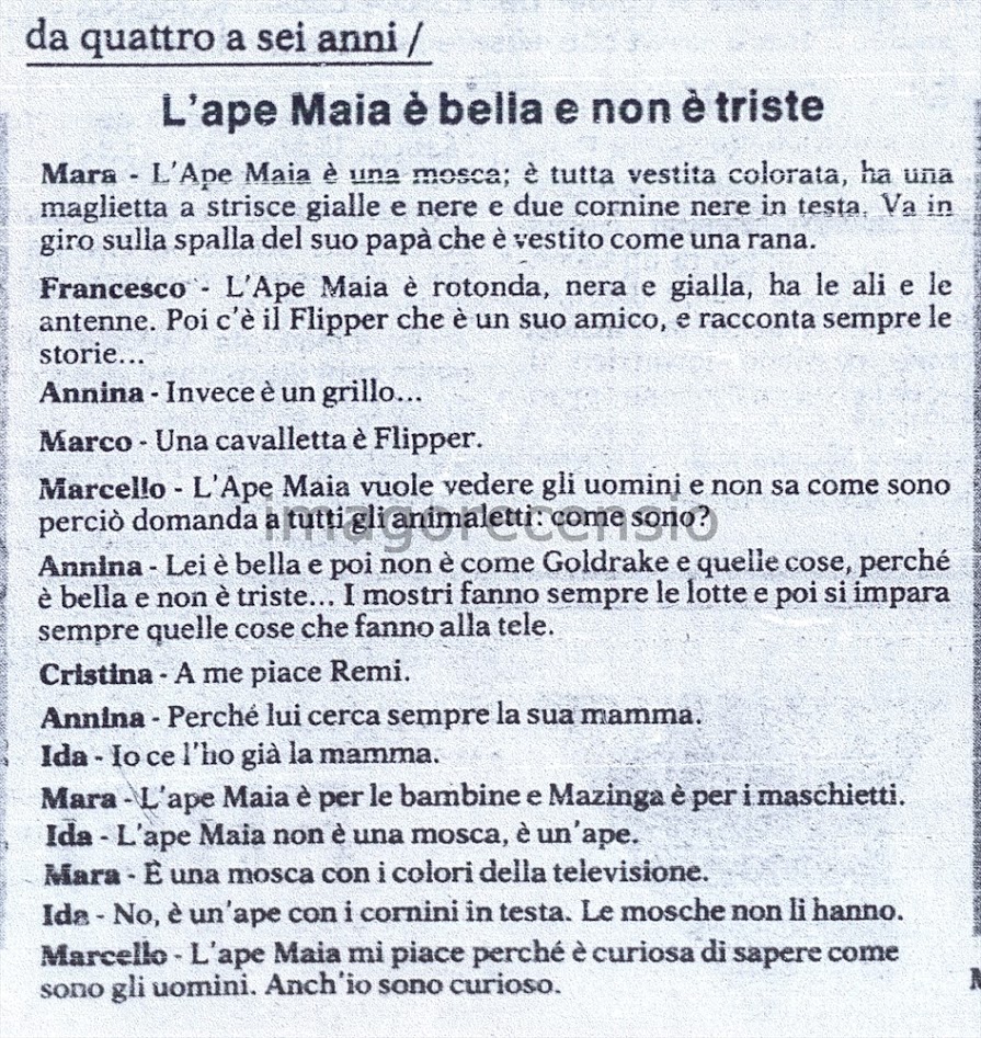 Occasionalmente, molto occasionalmente, i giornalisti avevano la magnanima idea di dare la parola ai soggetti dei loro fiumi di parole scritte, cioè noi bambini.